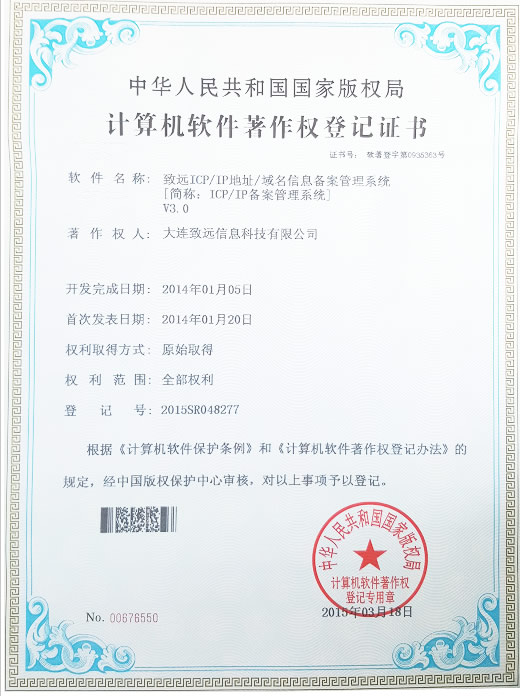 致远ICP/IP网站备案管理系统软件著作权证书: