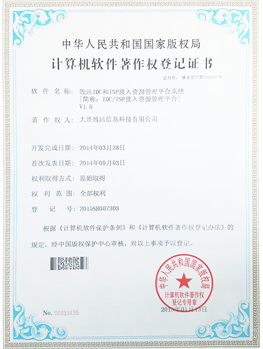 致远IDC/ISP接入资源管理系统软件著作权证书