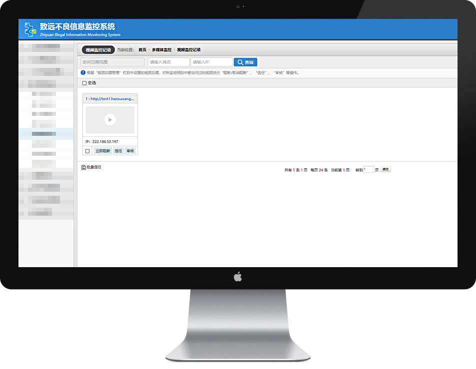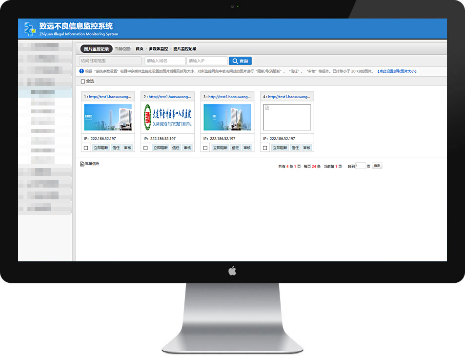 备案监控、WEB/WAP监控、HTTP关键字监控、图片信息监控、音视频监控。 |