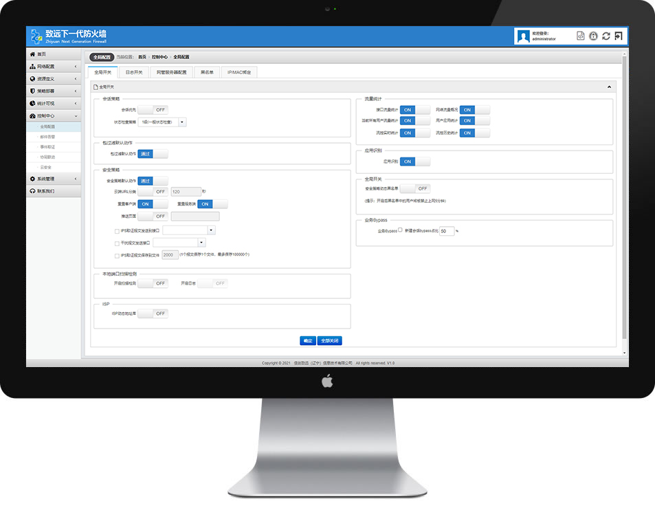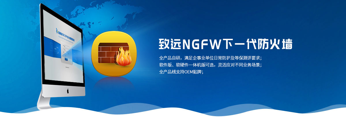 致远NGFW下一代防火墙,经过国家权威机构认证,通过L2-L7层全面威胁防御及强大应用安全管控技术,为用户提供领先的网络安全解决方案。NGFW整合了应用防火墙WAF、边界防护、网站管制、病毒防护、带宽管理、VPN、IPS入侵防护、应用程序管制等功能。通过深入检测网络流量中的用户、应用和内容,为用户提供有效的传输层和应用层一体化安全防护,帮助用户安全地开展业务并简化网络安全架构,达到安全区域隔离和安全防护的目的。