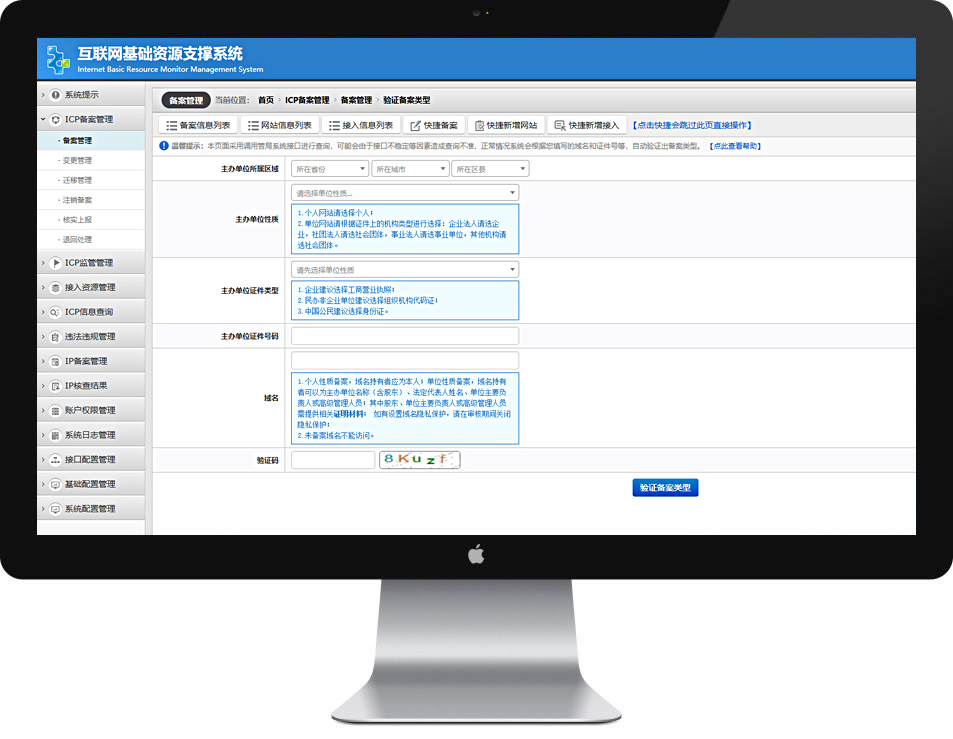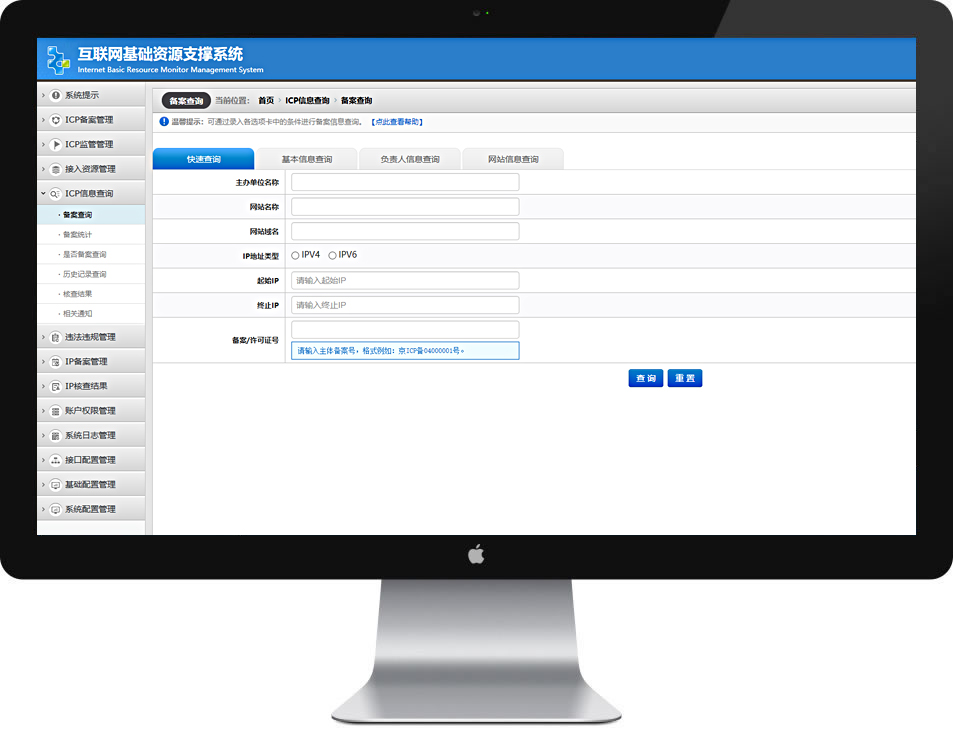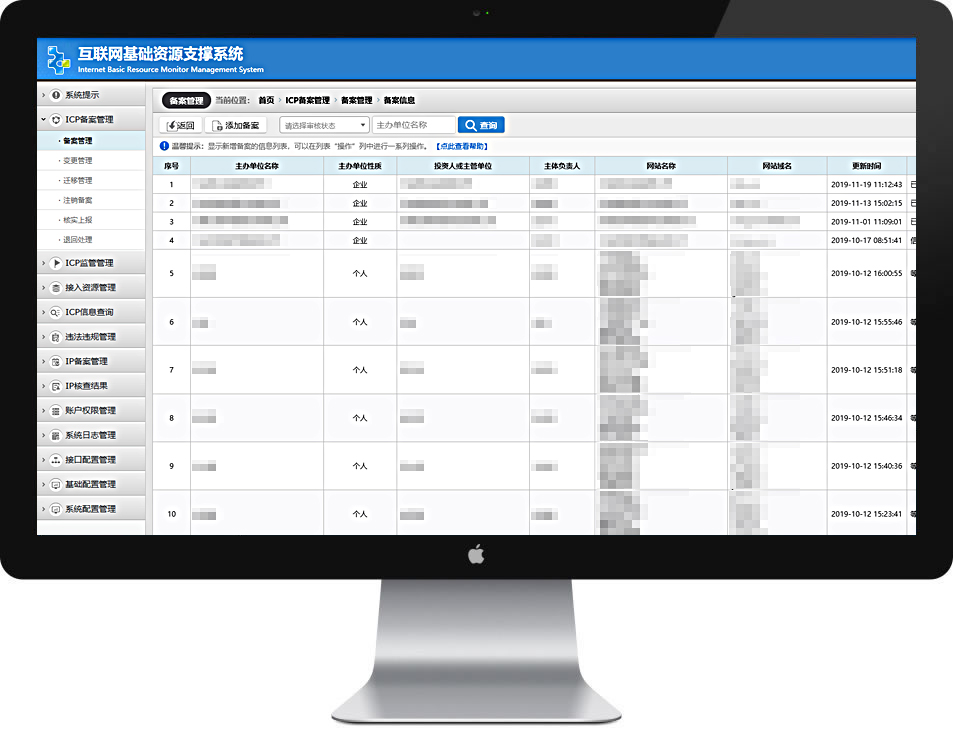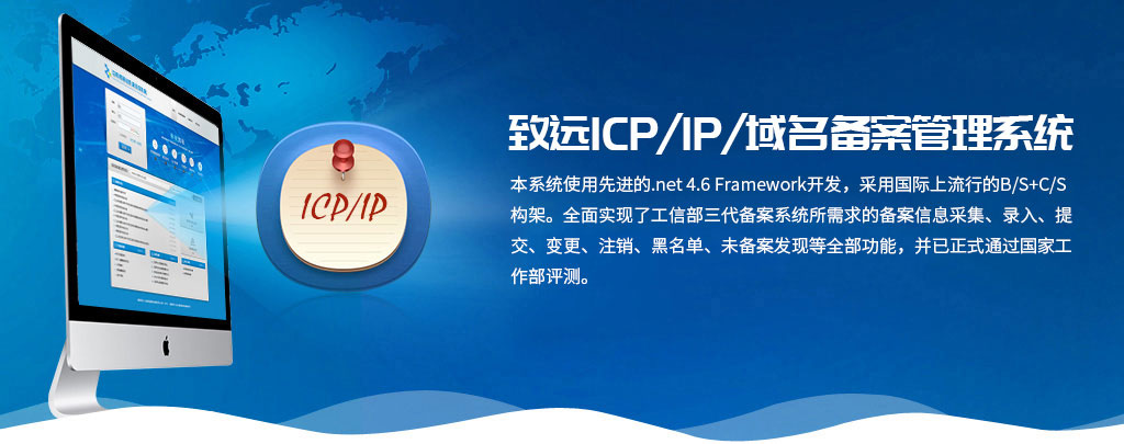 致远ICP/IP地址/域名信息备案管理系统(以下简称致远备案管理系统),是信创致远(辽宁)信息技术有限公司严格根据中华人民共和国工业和信息化部、《关于进一步规范因特网数据中心(IDC)业务和因特网接人服务(ISP)、业务市场准入工作的实施方案》、《接入服务商互联网站备案管理功能要求》、《工业和信息化部ICP/IP地址/域名信息备案管理系统企业系统接口规范》等相关文件要求,自主开发的一套针对互联网接入服务提供商的备案管理系统。 本系统完全符合国家通信行业标准,并已通过国家工信部评测,完全满足IDC/ISP互联网接入服务提供商的备案管理业务及监管需要,同时也是IDC/ISP服务商向管理部门申请经营资质、开展相关业务的必备系统之一。