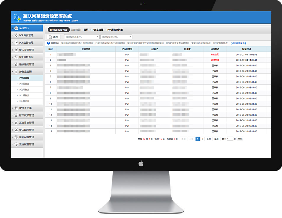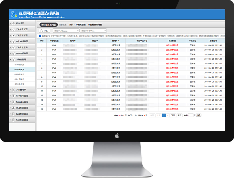 管局会定期对IP相关信息进行核查,同时会将核查结果下发至本系统。 |