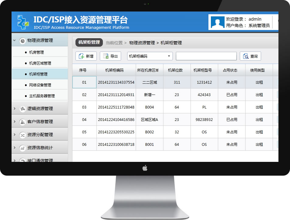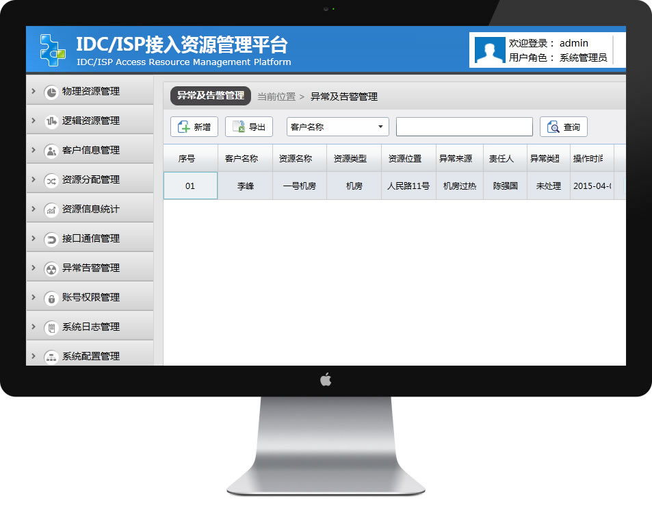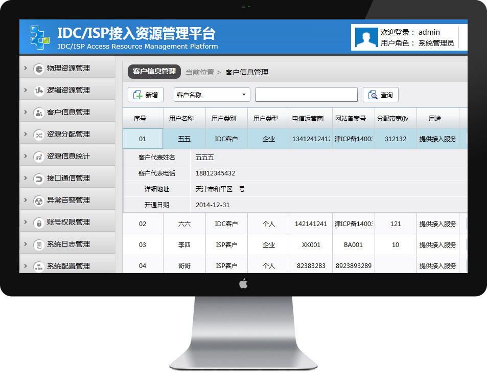 致远IDC/ISP接入资源管理系统,是严格根据工信部相关系统要求而自主开发的一套资源接入管理系统,设备主要针对接入资源的分配、使用、转租等信息的记录,并对接入资源的日常使用实行日常发现、分析和处理,使接入资源的空闲、分配、变更、释放等状态有据可查,大大提高了资源的利用率和资源的管理效率,同时也满足电信管理部门和IDC/ISP企业接入资源的需求,在此之外,同时也实现了接入资源数据的上报的功能,接入资源数据能与管局的数据进行同步的功能。